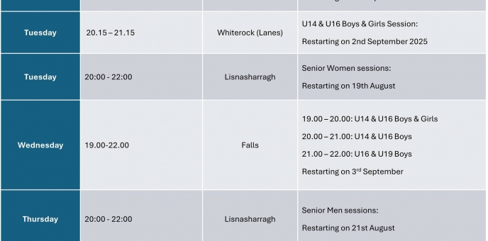 Here are details of Cathal Brugha training sessions restart info for the 2025/26 Season Read More →